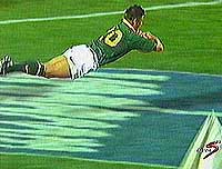 (Bobby Skinstad scores against Australia during the Winfield Super 12 competition)